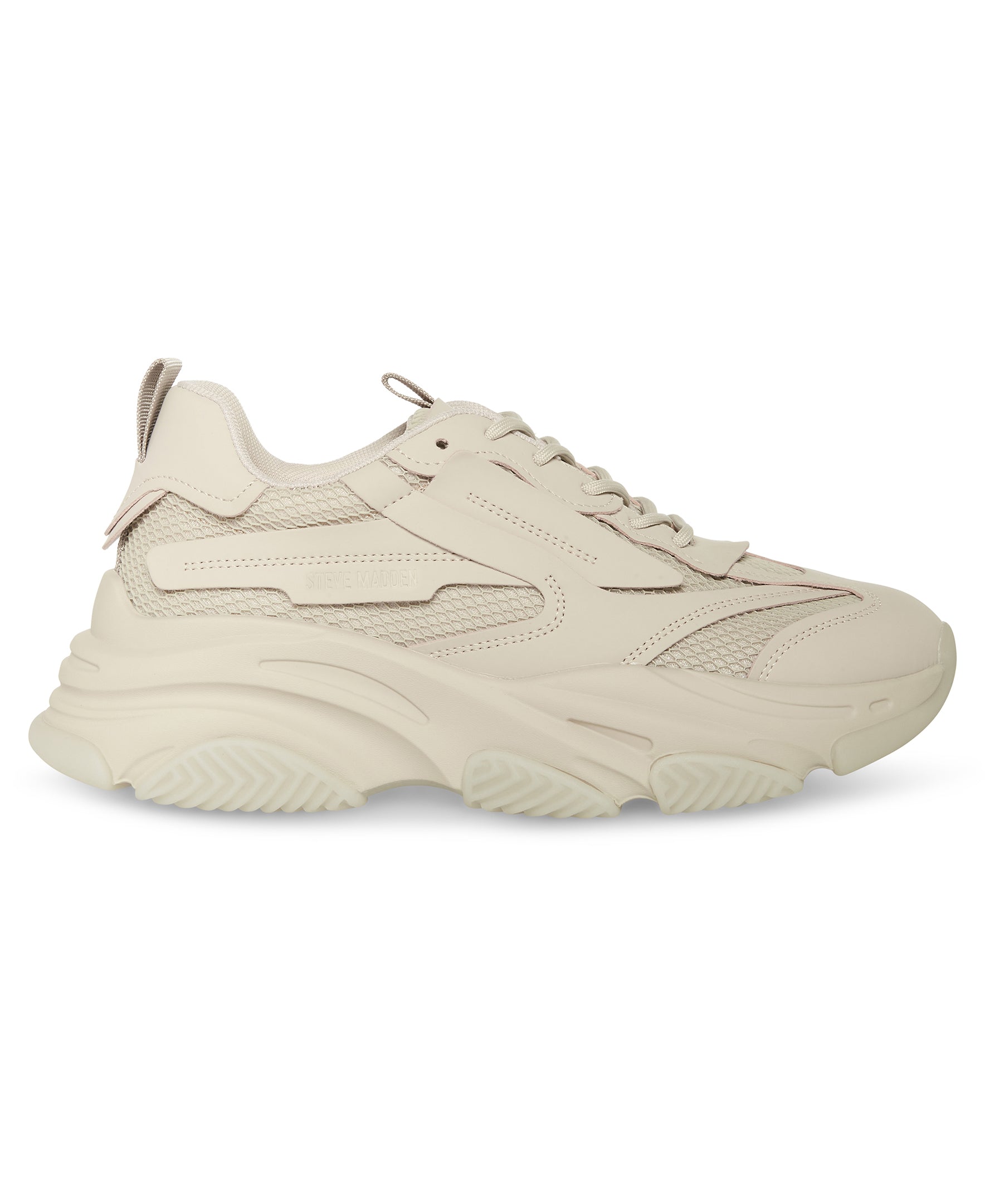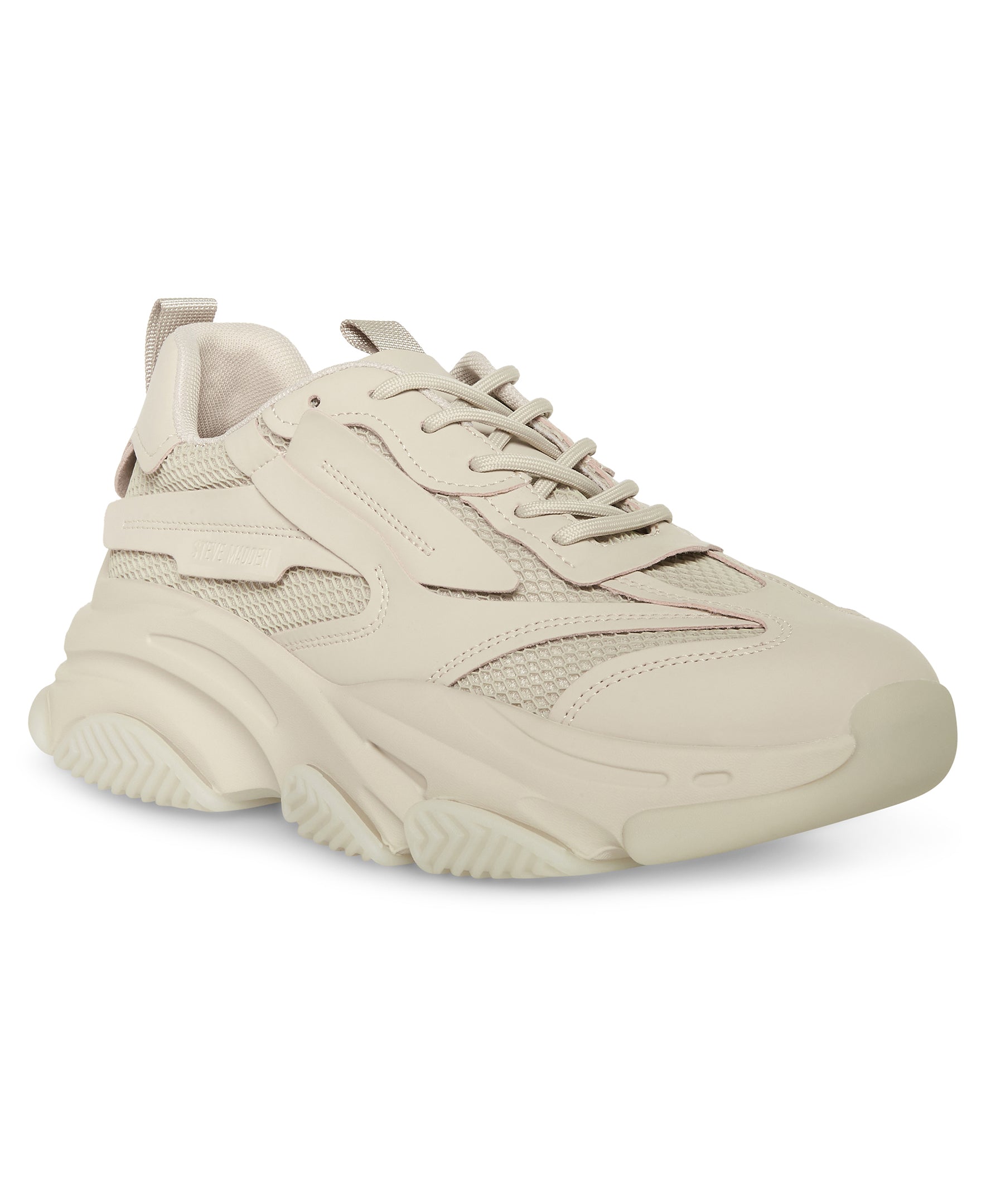أحذية رياضية عصرية ذات نعل سميك، إغلاق برباط، نعل عريض مصبوب، نعل مطاطي، جزء علوي من القماش مع بطانة صناعية.