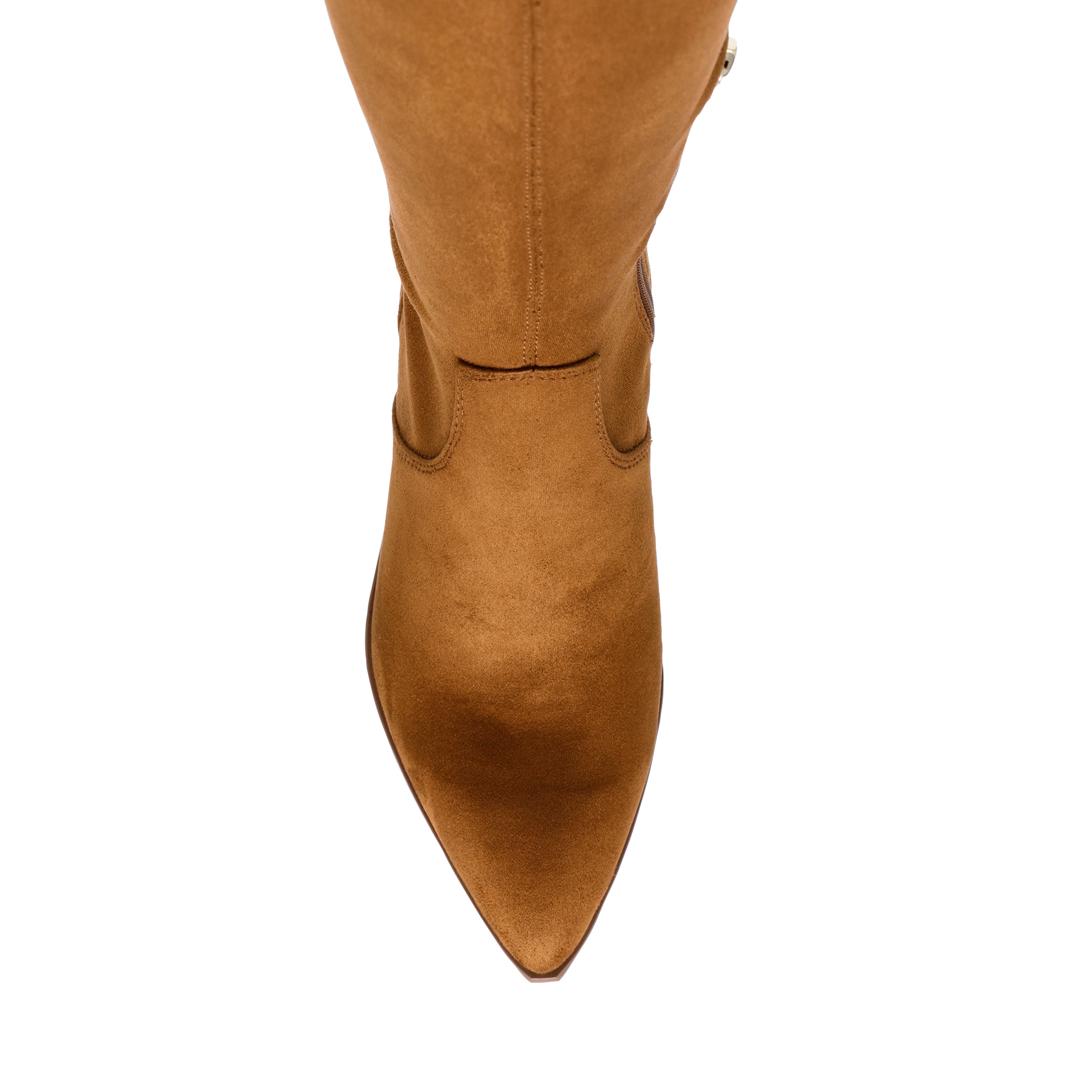 Womens Knee high boots in cognac suede material with lace tab detailing.